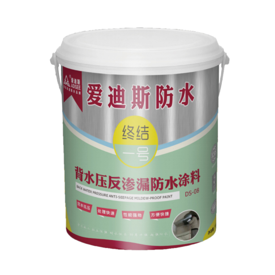 ADS- -08背水壓反滲漏防水涂料,采用了最新的水性高分子聚合物樹脂乳液為主要原料,配合性能優